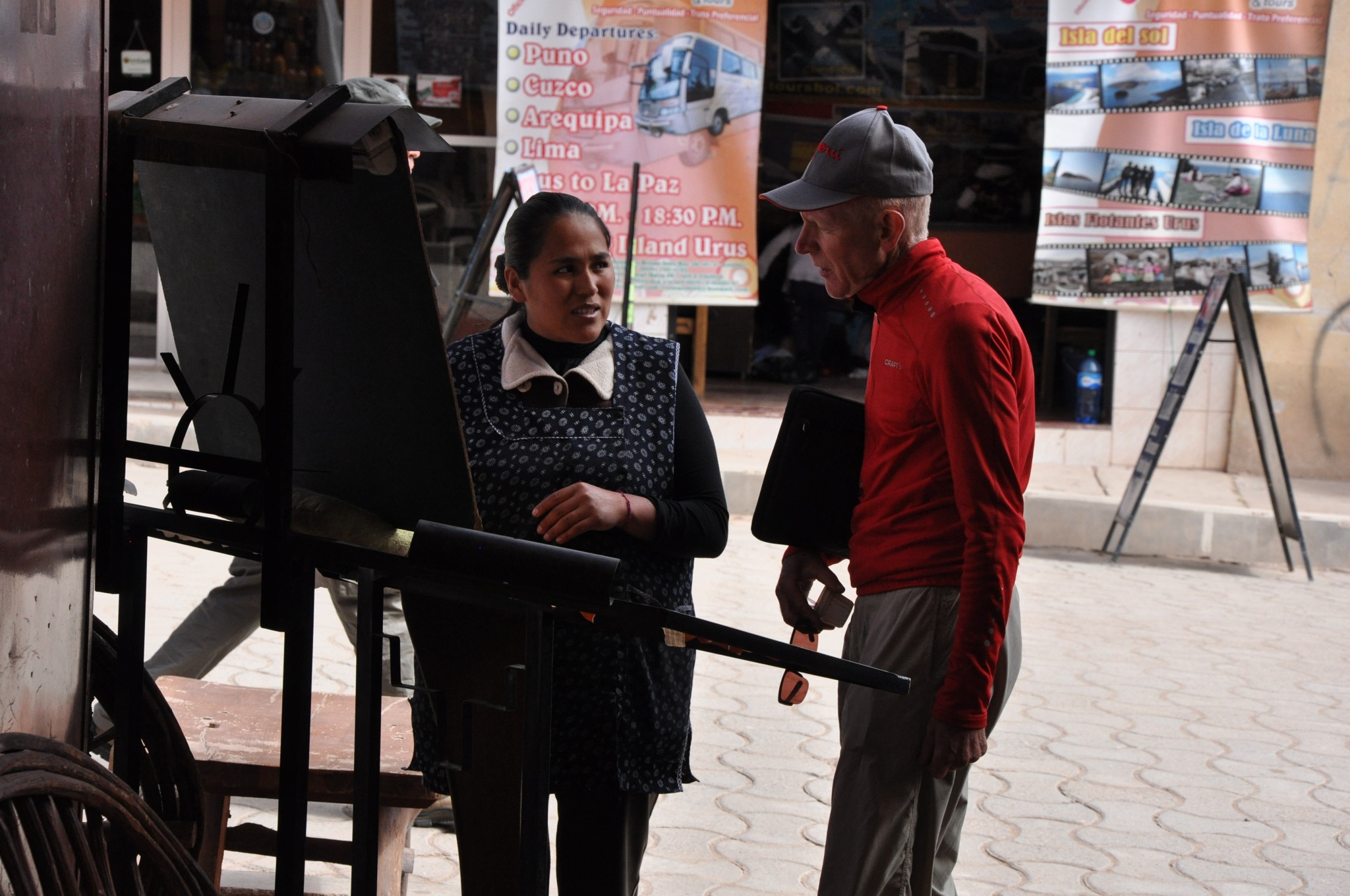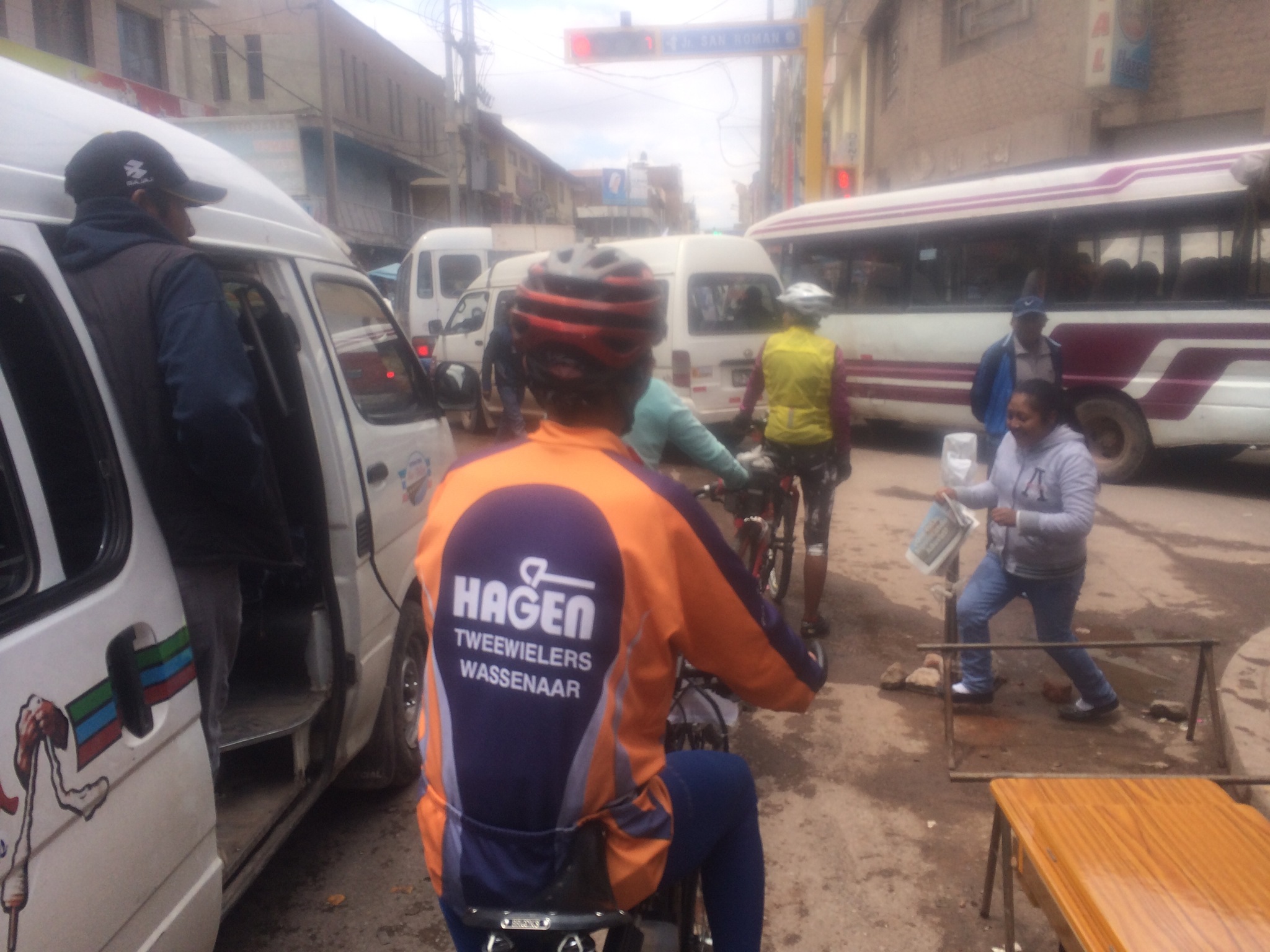 As in much of Bolivia trash is scattered about and there are smells of all sorts of human activity. Street vendors are scattered about the sidewalks and in the roadway, selling everything from kitchen Formica to tourist knick knacks, food vendors with some delicious looking meals. And hidden away restaurants which are difficult to see on the outside but delightful inside (with wifi). A barrage of the senses. I did not eat much as feeling sick but on our departure while waiting for Ellen, our cook, to do some final shopping for wine and cake I did sample an excellent empanadas. Fresh out of the oven and just delivered to the street vendor. Filled with beef, vegetables, hard boiled egg, olives. Oh my gosh it was a taste sensation. Sickness be damned. The two two dozen which were delivered were all gone by others by the time I had eaten and paid for my empanadas and coffee.
