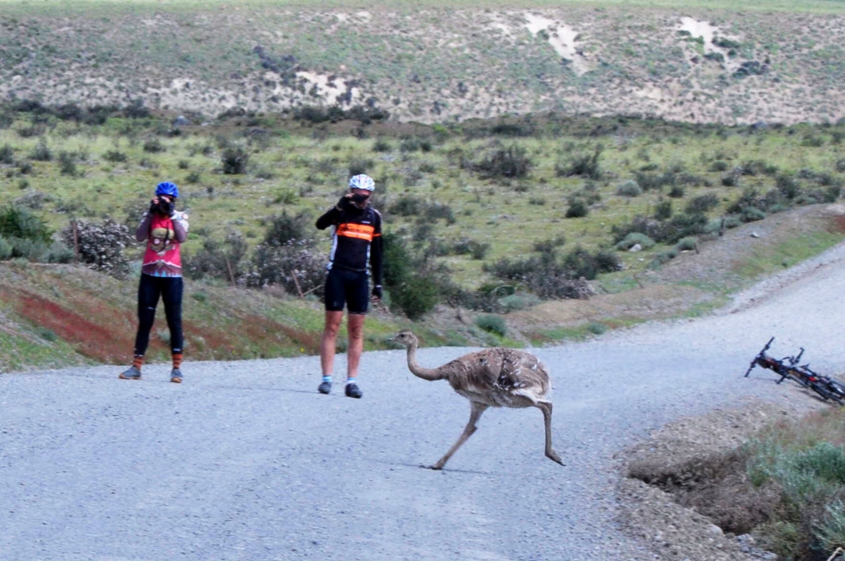 Approached closer and closer and like riding through National Geographic. Rheas, guanacos, condors, tourists. Had to keep stopping to take pictures and have our picture taken.