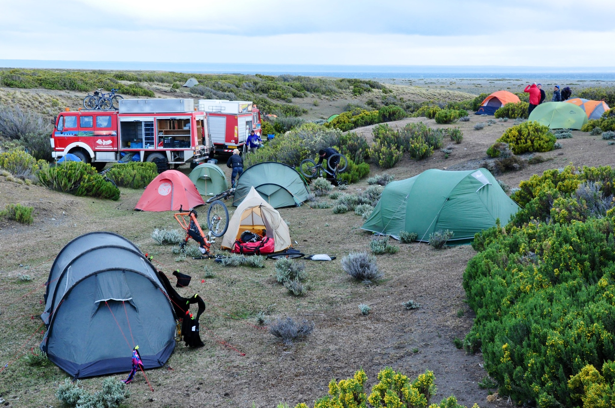 This bush camp is situated in a little valley with a small sort of flowing creek, although there are several dead sheep in the creek bed. And a large area in which to choose tent sites, but bathroom facilities in a bush camp are where you can. Unfortunately it is wide open here. I do believe there will be a lot of people trying to get up before the crowds to “wander”. It does get light though about 5 am and breakfast is not till 7. Always an interesting problem.