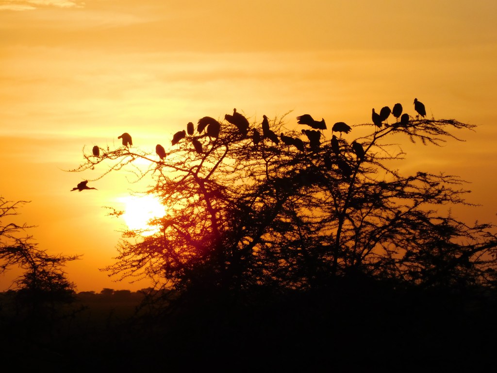 The sun was beginning to set and and the storks went into the trees to roost. Got some I believe incredible sunset pictures to complement the sunrise pictures.