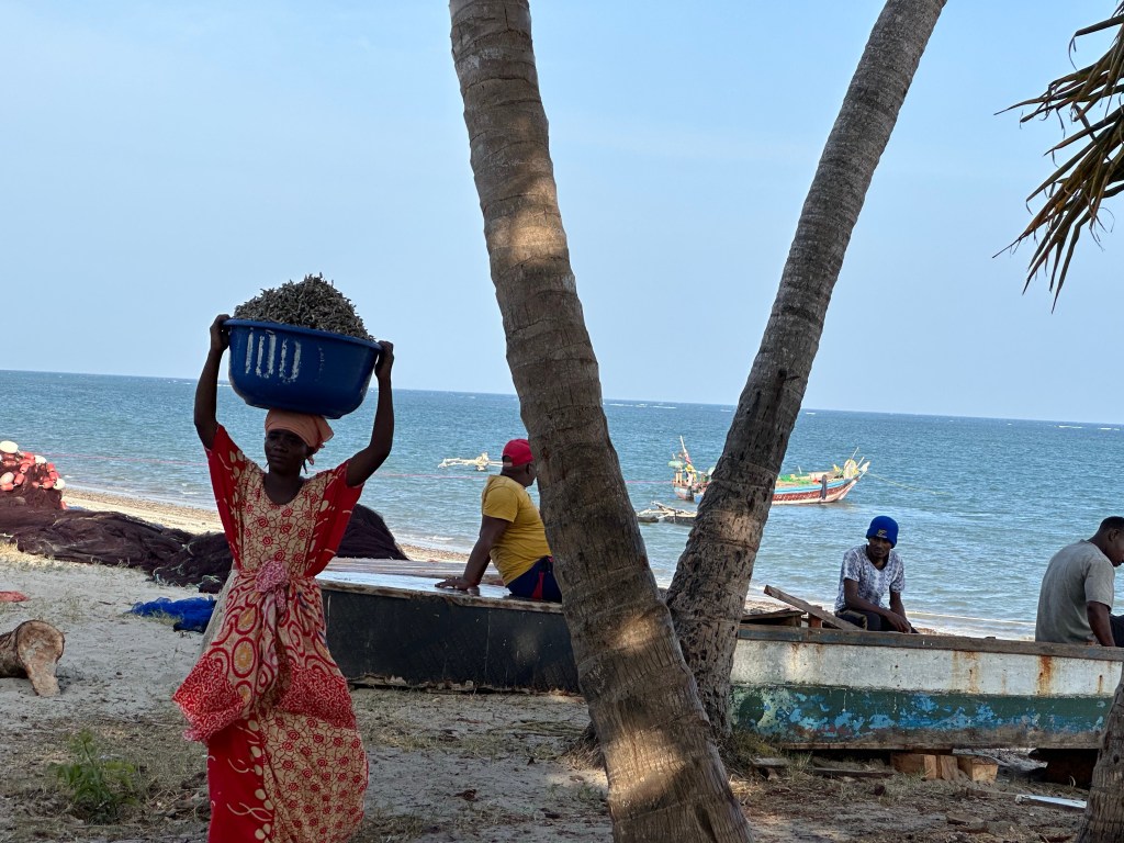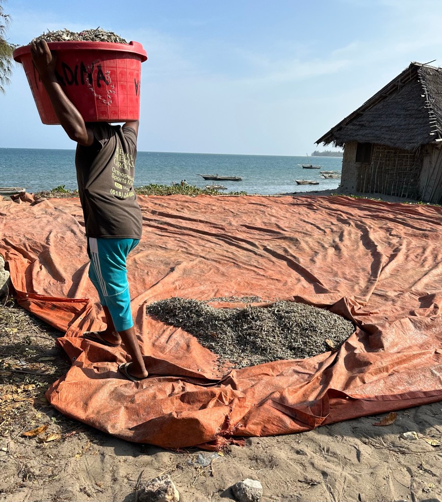 Boat repairWater bath for wood and mango wood behindHauling in the fish catch after dryingDagga fish drying facilityMangroves low tide