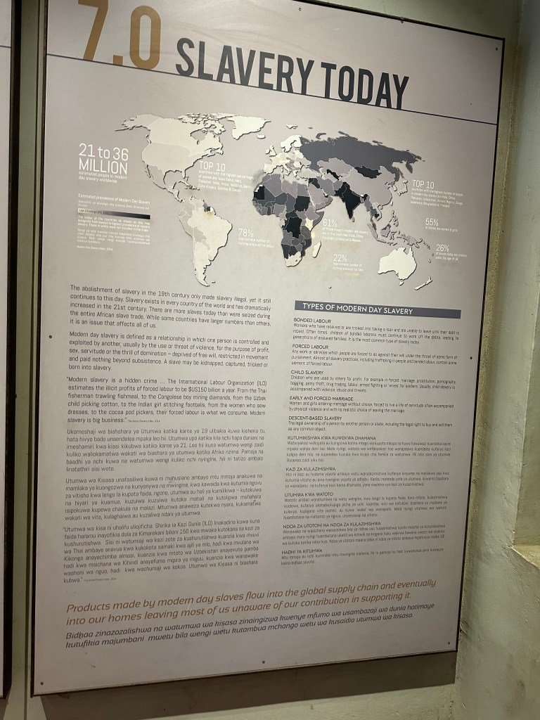I had never thought too much about it, but history can tell a lot about the present. Slavery was a big thing here, dating back to beginning of humanity really , but in Africa it became a modern day commercialized industry. It destroyed cultures and people. Look at the modern world and many countries are messed up because of their slave history. It is hard to just dismiss it and go on without being affected. Look at the United States, it is still suffering 160 years after slavery officially ended.