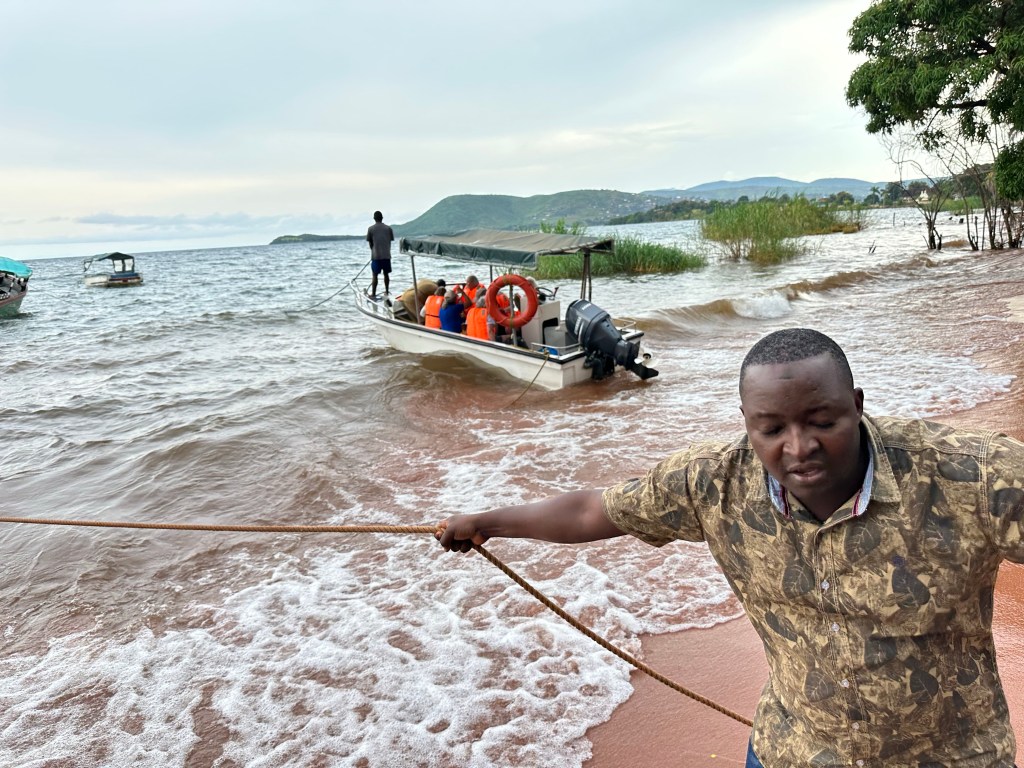 Loading boats launching Jeanne on arrival Gombe