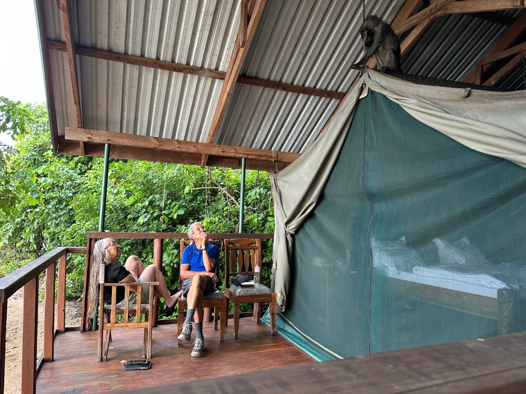 Then on to the two boats for hour ride to Gombe national park. This is where Jane Goodall did her work and displayed in National Geographic in 1961, by her photographer husband. Again tent camping, no escort required to walk at night, but most definitely lock the zipper doors with provided locks, as the baboons have figured out the zippers and love to go in and remove items to somewhere outside.