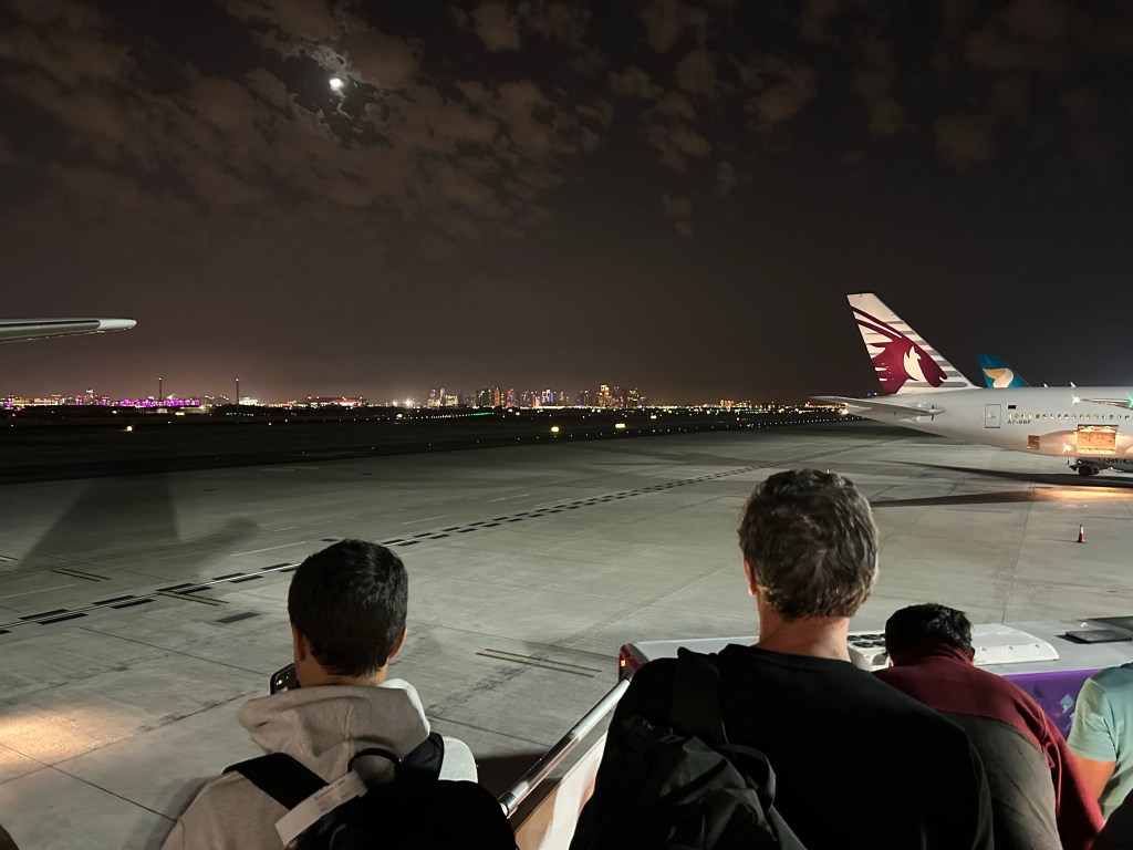 And going home. Currently in the cattle corrals at Qatar airport awaiting departure to Seattle. They did not have a full staff waiting for us with fresh juice at airport hotel. This airport is huge. We are in c gates which number well over a hundred. Presuming a, b,& d gates are same.