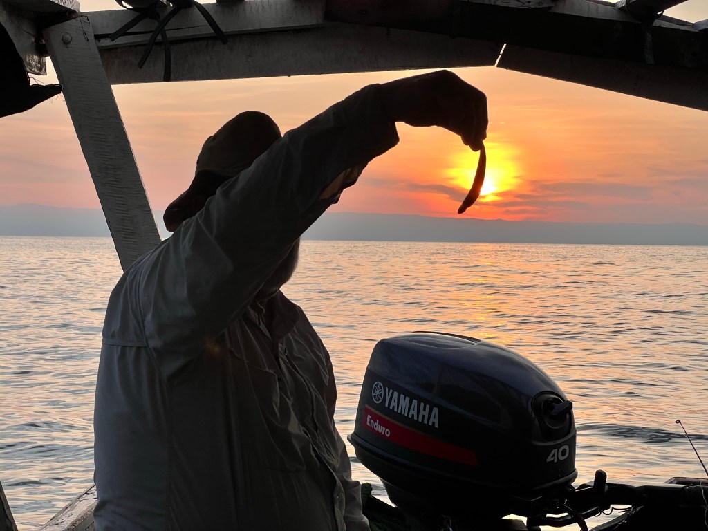 Swimming in the lake was great. Apparently the longest lake in world after lake bakal in Russia. It is 660 km long (400 miles ) but where we are one can see across to democratic republic of Congo and Burundi. Famous for that and it’s fish which include many cichlids and is a source of many aquarium fish. Dave and I snorkeled about the dock (which is mostly underwater, except for handrails), amazed at the number of species. Although not as colorful , almost more interesting than the reef last week. And fresh water which was quite refreshing, as temperatures high and high humidity.