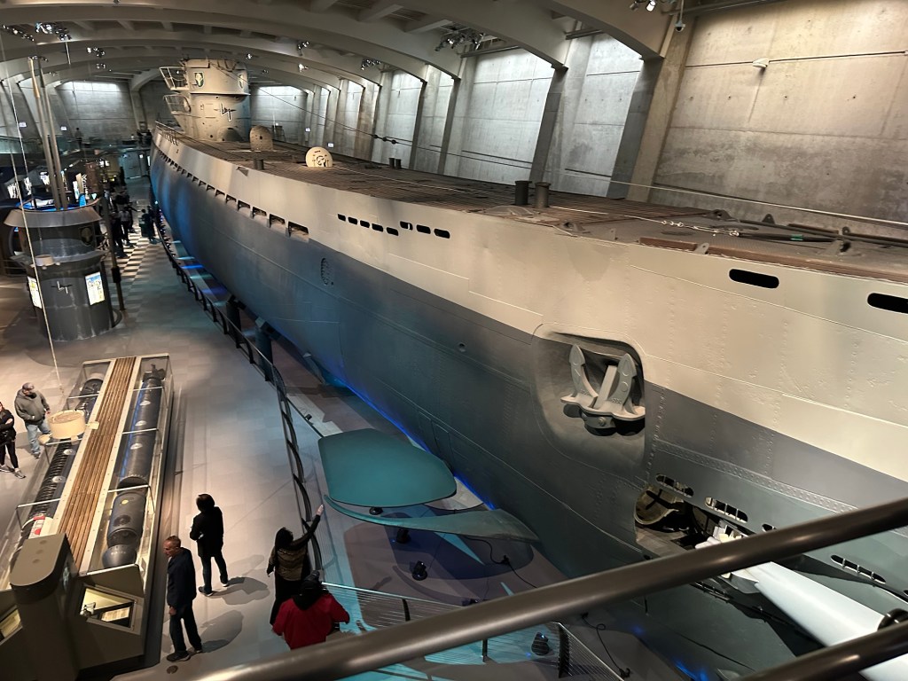 As with all museums, no matter how good, my brain gets full after a couple hours and one must return, hence we planned it that way. A leisurely morning, laundry at hotel – lunch and Lyft to the museum. And as expected overwhelmed with options of different things. We hit the ground running, concentrating on the world warII captured German u-boat submarine, the 505. And the “blue paradox” about plastics in the ocean and water. We had to go back and forth between events as tour timing. In the end we wanted more, the exhibits covered the basics, which already known, but as one said, they have to dumb it down for the masses. But the presentation was spectacular with lots of special effects.