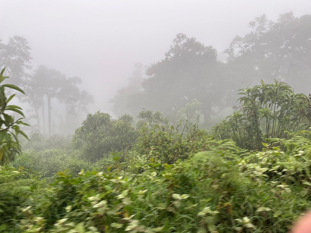 At the falls I walked into the falls totally soaking my clothes, but it felt so good and I knew would dry somewhat quickly. The jungle surrounded us and I kept wondering about “Tarzan” swinging through the trees vine to vine. Fascinating jungle, different than Panama or Bolivia jungle, but tropical jungle. Growth on growth on growth. Totally fascinating! One talks about alder bashing at home. That would be easy compared to attempting cross country without a trail here.