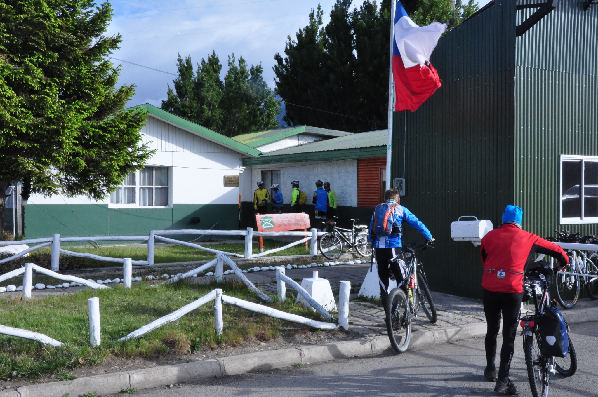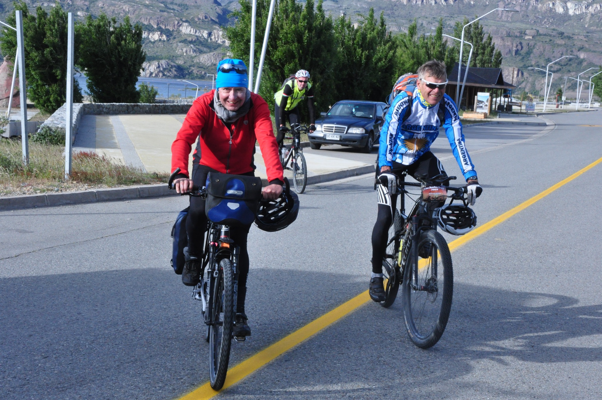 But as for the daily activity, started with porridge which is always a good start. Everyone gets excited on porridge days. Then off at 8 for the 2 kilometer ride through town, turn left at lake and await the trucks as no use going through immigration unless they get through. The lake Lago Buenos Aires is big and we rode for 35 kilometer along and above some of it. Beautiful blue color and apparently, has a ferry running across which if time could replace some of our distance today but length of time and schedule does not allow. Besides no bike riding on ferry.