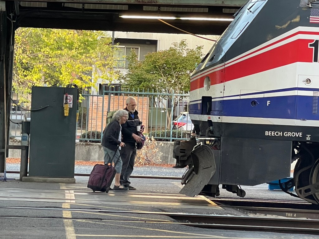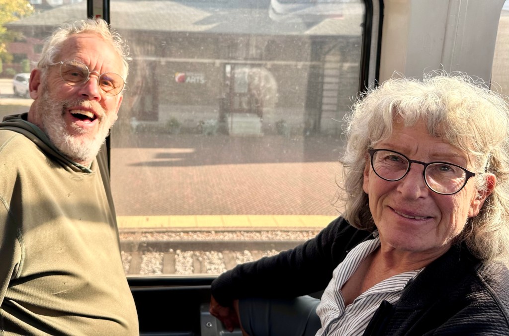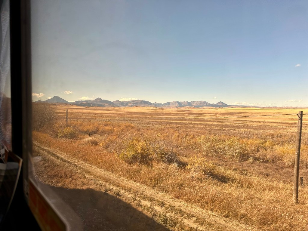 One of the people we wanted to stop and visit was my sister. Unfortunately she and husband Steve are doing a driving trip visiting relatives, and were in Wisconsin when we passed through whitefish, Montana. But they were driving home and we would pass. We tracked each other and they stopped in Glasgow, Montana last night. Turns out a stop on our train, but a drop and go stop, no getting off for us and only seconds there. They came to the station, and I told them where we were-the lounge car. I looked but did not see them so decided to run for the door and wave. Unfortunately they saw us, while going down the stairs the train left, but I missed them.