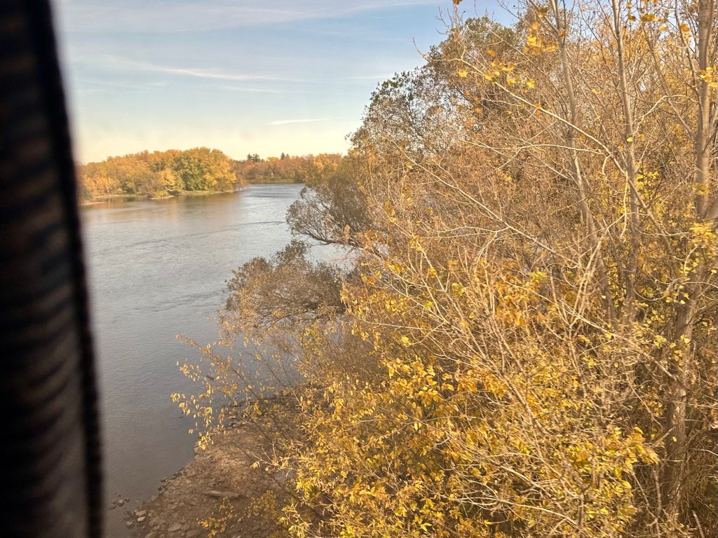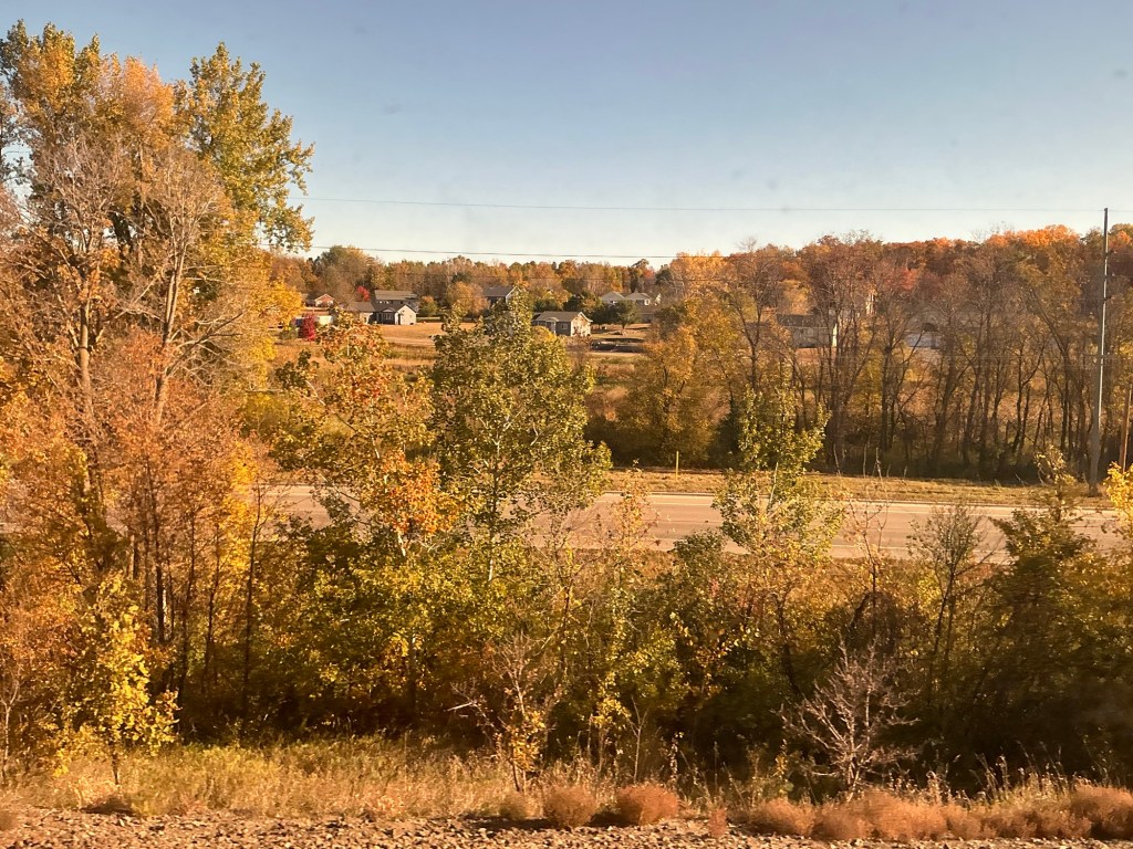 Yesterday afternoon and today have just been sitting back and watch the scenery go by. Lots of reading materials and movies, but scenery is best. We left the mountains and were in miles and miles of wheat fields, already harvested. Today it is miles and miles of corn, although there are deciduous forests here. The colors though have not been coordinated and are a mishmash of green, red, yellow, orange. Jeanne is calling it paisley fall colors. Some are past prime some have not even started to turn colors. I noted in the forests often in relatively remote areas there were tree houses. Perhaps deer hunting sights.