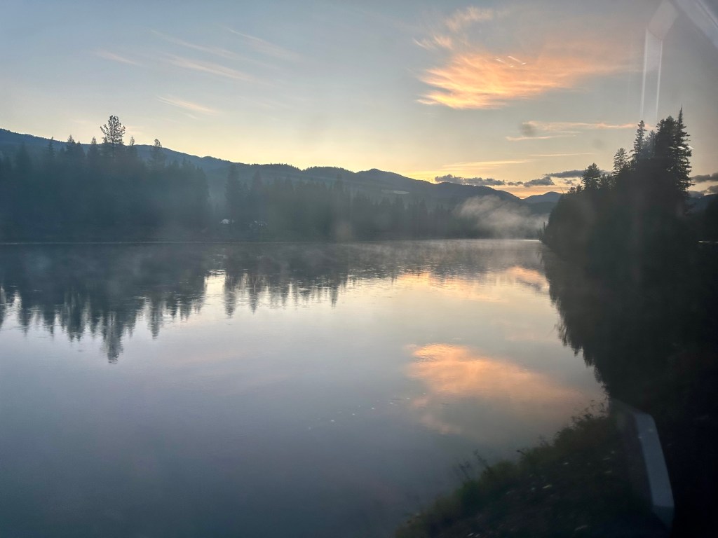 We texted back and forth and the aurora was supposed to be out even down here. We returned to our roomette, blocking the light as well as possible, but minimal. Did get a picture on the phone which showed more than we saw, but something about taking a picture in the dark of a moving object while going 60mph did not work.