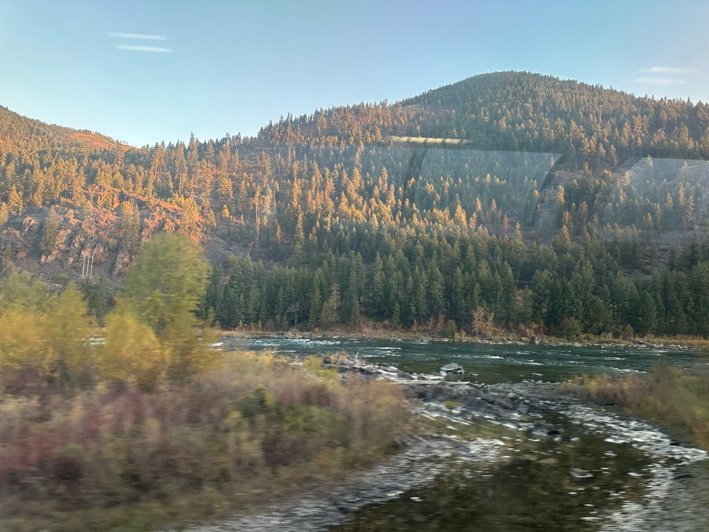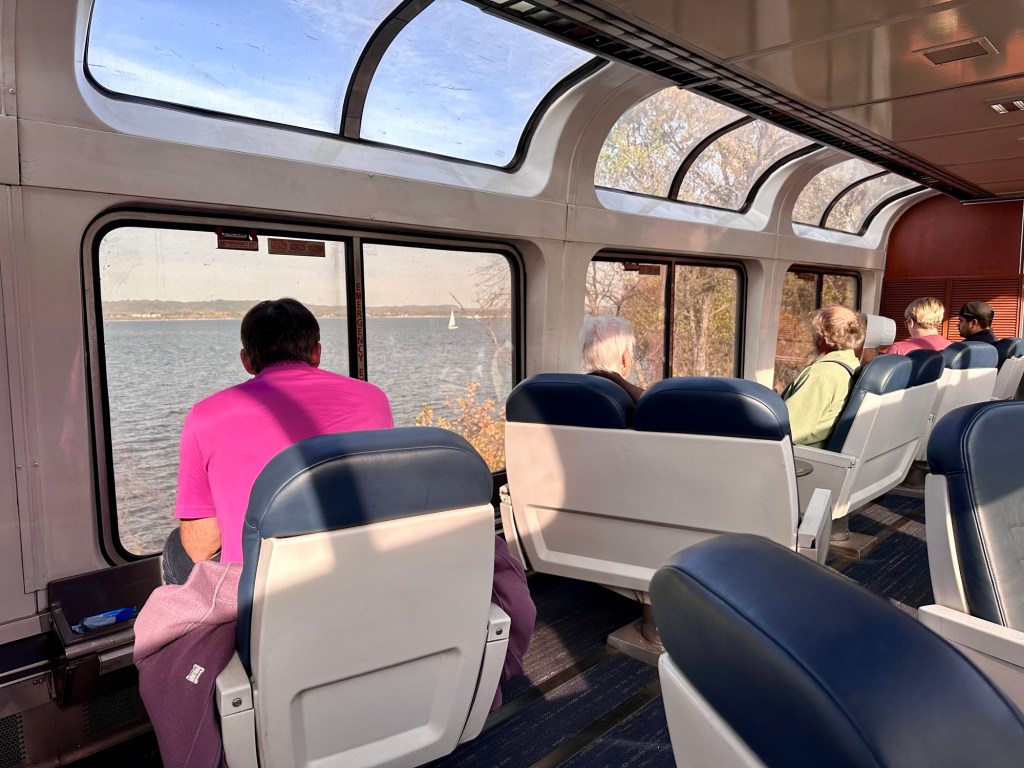 I have also started taking picture of us, not because we are vain or whatever, but the windows are so dirty it is difficult to get a decent picture. We still sit here in the lounge car enjoying the passing scenery.