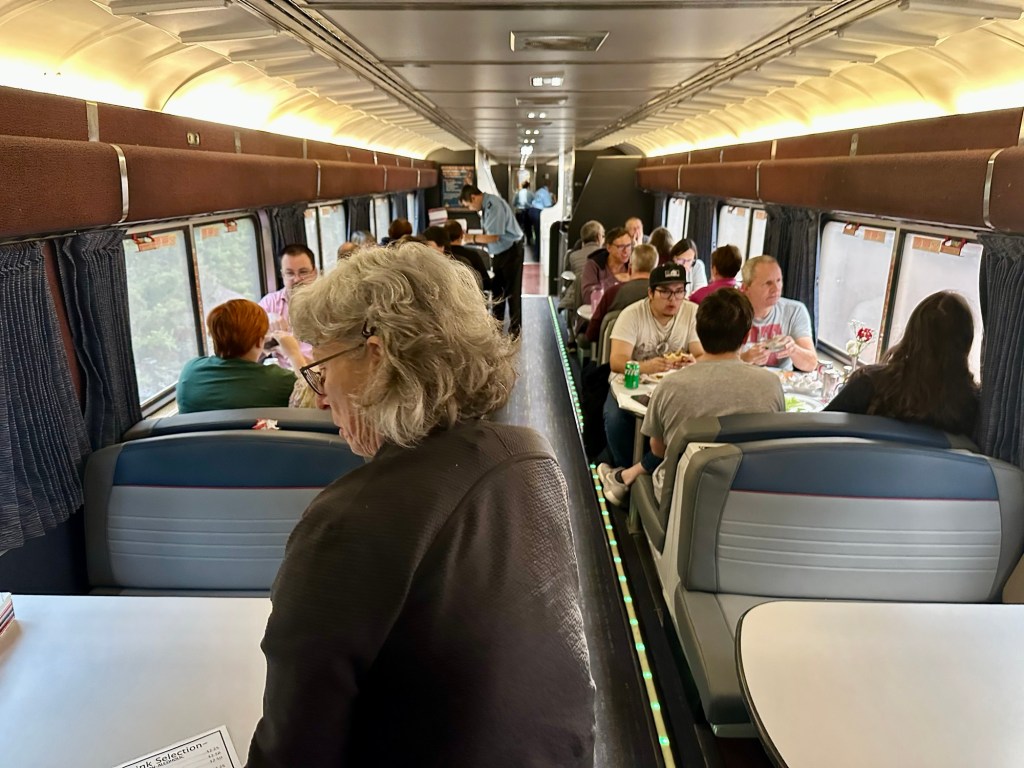 Hour 46 and running 8 hours late. Scheduled arrival Chicago was 4:45, now scheduled for 9:32. Seems the train people are trying to make it work, but the infrastructure is not there.(according to me) Freight trains take precedence, and we often have to stop at a siding and wait. Apparently when we left Portland late that drops our priority to the bottom of queue. Alas. It is what it is. We just left Minneapolis-St.Paul and cruising at 78 mph.