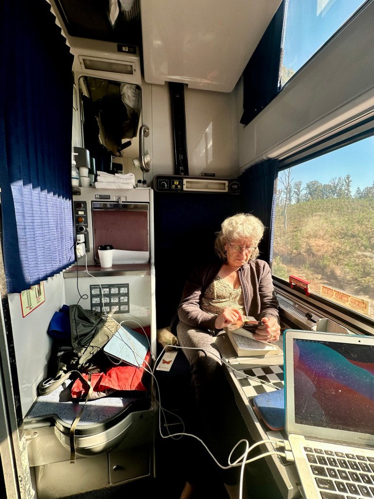 This has been the nicest train yet. It has an observation car again and no toilet in room, hence a bit more room, although bunk is the very tight quarter one although not sleeping in it.