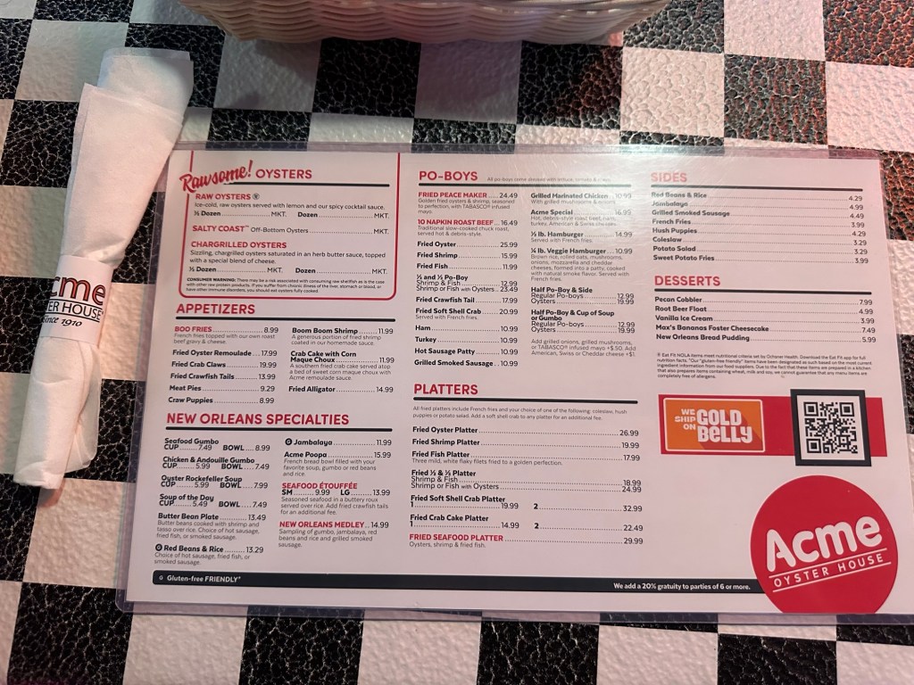 Does not show the jambalaya, gumbo, shrimp etc