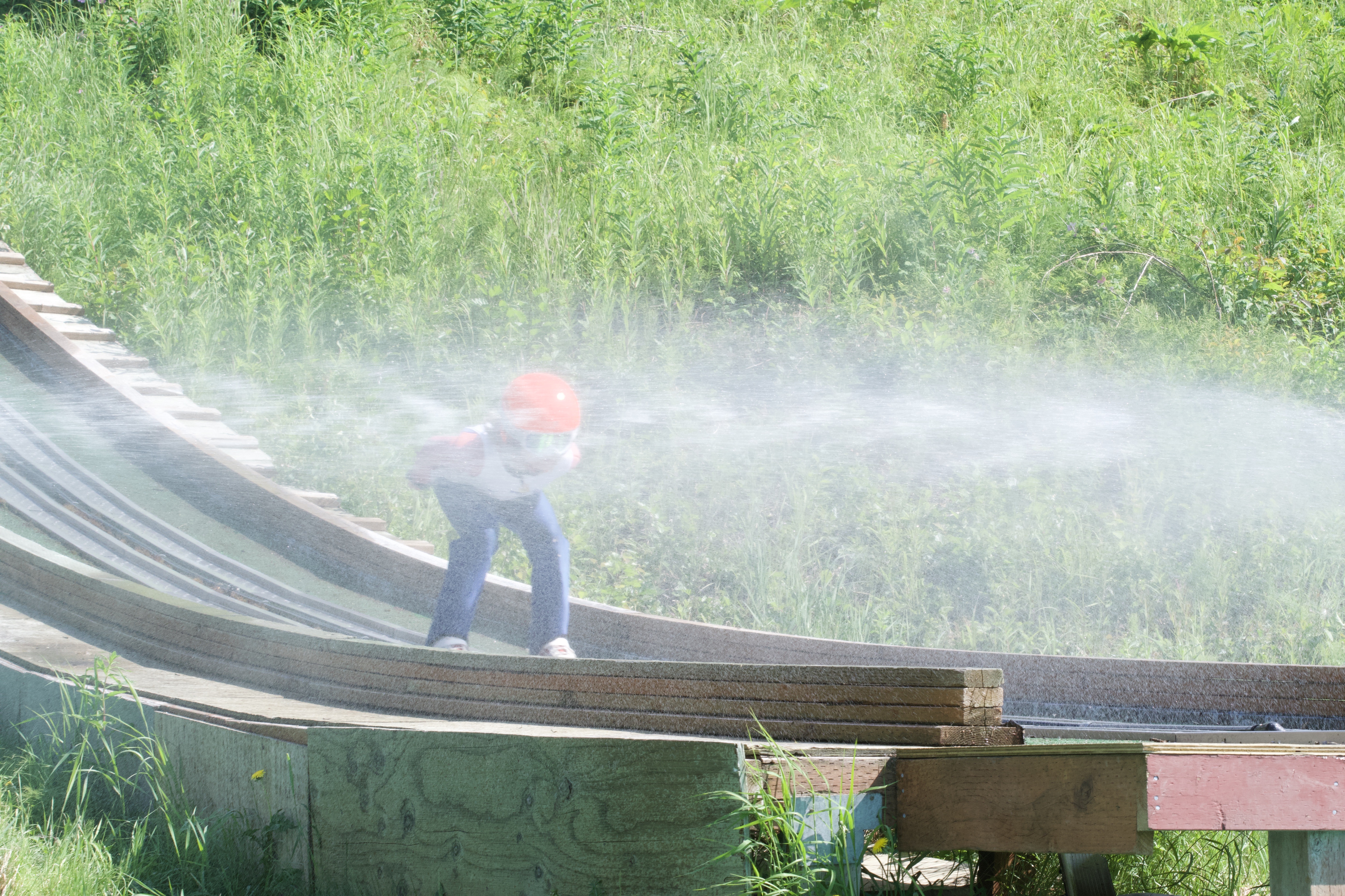 The mental aspect is great as we have to not only figure out how to do something, but how to do it safely. Working with heavy equipment, in the cold has its potential problems. Not only is the water at way below freezing temperature, but the snow gun uses 440 volts and has its issues also, as well as the ski jumps have a 35 degree slope to contend with.